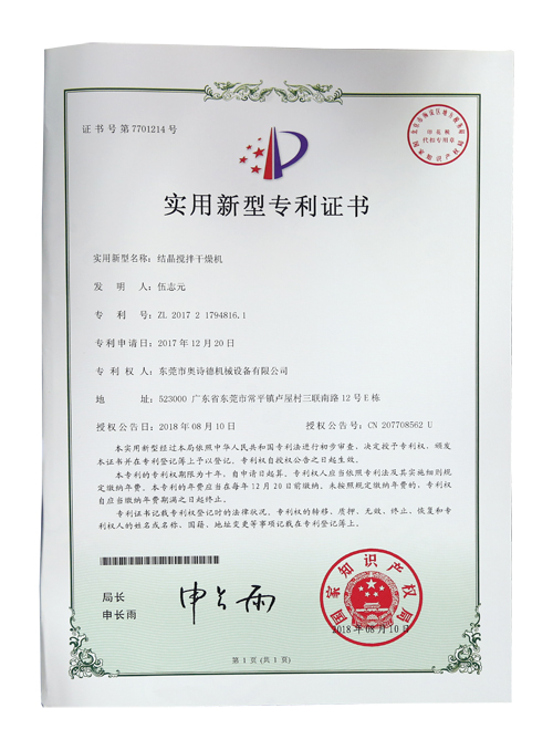 蜂巢轉輪式三機一體除濕干燥機高新技術產品證書